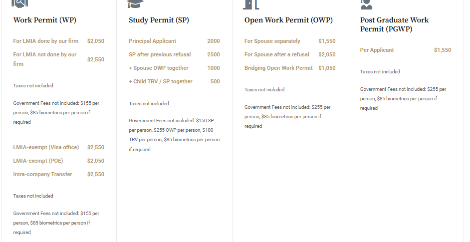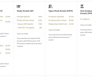 Transparent fees for every Canadian immigration program, including initial consultation costs